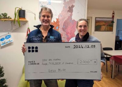 Dans le cadre de son programme d’impact social, le Groupe BBA Inc., entreprise d’ingénierie et d’environnement qui possède des bureaux à Mont-Tremblant, a généreusement offert un don d’un montant de 2 000 $ à l’OBV RPNS. Ce geste reflète l’engagement de l’entreprise envers la protection de l’environnement et la gestion durable des ressources naturelles, des valeurs qui constituent l’un des piliers de leur mission. L’OBV RPNS est profondément reconnaissant pour cette marque de confiance et cette reconnaissance provenant d’une organisation qui partage notre vision d’un environnement protégé et durable.