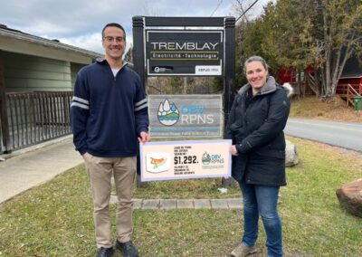 Ziptrek Ecotours, reconnue pour ses expériences écotouristiques et ses parcours de tyrolienne immersifs en pleine nature, permet de découvrir la beauté des paysages des Laurentides tout en sensibilisant la population à la préservation de l’environnement. Cette vision, qui s’aligne étroitement avec la mission de l’OBV RPNS, se traduit concrètement par un don de 1 300 $ envers notre organisme. Le montant de cette contribution provient d’un pourcentage des revenus générés par Ziptrek via la vente et la location de matériel, une initiative admirable qui soutient plusieurs organismes, y compris l’OBV RPNS.