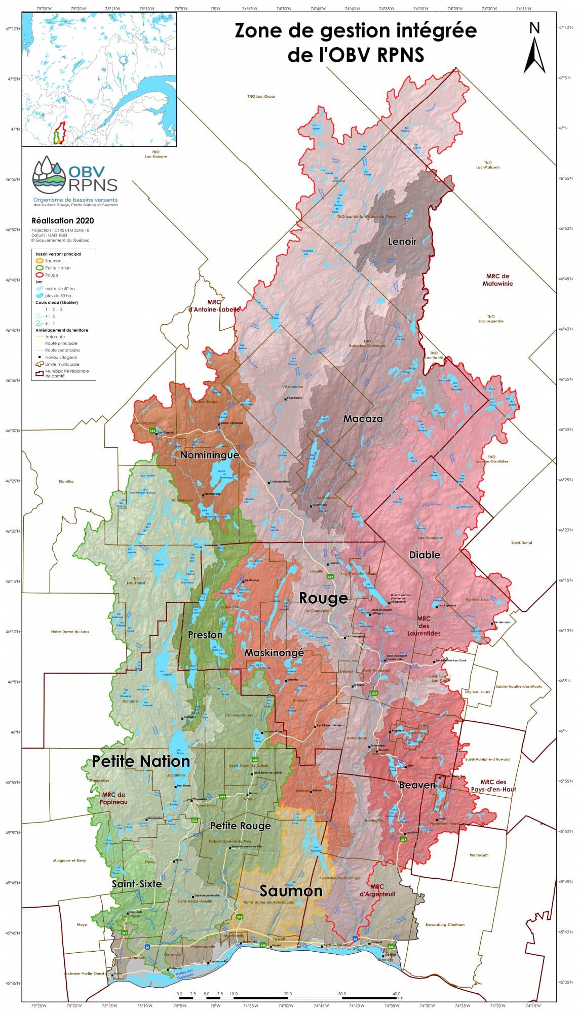 - À l’est par la zone de gestion de l’Organisme de bassin versant de la rivière du Nord (Abrinord)