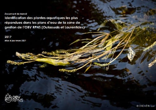 L'OBV RPNS a produit un guide d'identification des plantes aquatiques les plus répandues dans les plans d'eau de sa zone de gestion. Ce document constitue un document de travail pour l’OBV RPNS et ses partenaires. Des espèces difficiles à distinguer les unes des autres ont été regroupées pour faciliter le travail sur le terrain. Pour une identification plus fine des plantes aquatiques, il est fortement recommandé de consulter un ouvrage de référence.