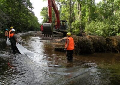 À l'été 2012, un partenariat d'envergure a été déployé afin de rétablir le potentiel de fraie des dorés et ouananiches du ruisseau Jourdain. Ce défi de taille rallia l'OBV RPNS, les municipalités de Nominingue et de Rivière-Rouge ainsi que les ministères des Ressources Naturelles et de la Faune (MRNF), des Transports (MTQ) et du Développement Durable, de l'Environnement et des Parcs (MDDEP). Les frayères à doré jaune et à ouananiche avaient été détériorées au fil des ans par divers apports en sédiments (naturels et anthropiques). L'importance de restaurer cet écosystème aquatique essentiel pour le poisson s'est vite manifestée auprès des différents intervenants. L'OBV RPNS a donc pris en charge la coordination ainsi que le suivi du projet.